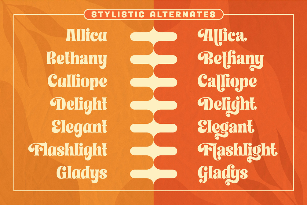 Introducing Feeling Things, A Modern Serif Font with Retro Vibes. It was inspired by retro typography designs in 70's. There are more than 375 glyphs in this font including Multilanguage Support. OpenType features with Stylistic Alternates, Contextual Alternate and ligatures in some characters that allows you to mix and match pairs of letters to fit your design.